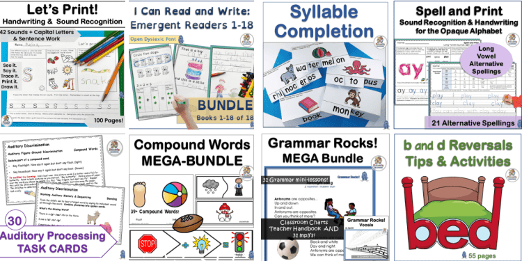 ✅ Check out b d Reversal Strategies, Printing Practice, Alternative Spellings, Auditory Processing Task Cards, Syllable Work, and more with outstanding resources from Primarily Learning!
